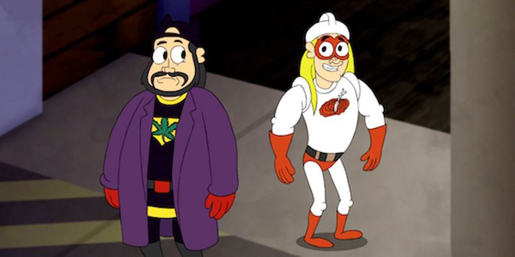 Fuera de las películas, ha habido algunos productos adicionales para Bluntman y Chronic, incluido un cómic. Esto, a su vez, fue adaptado para 2013 ¡La película de dibujos animados Super Groovy de Jay y Silent Bob! Esta aventura animada es la única película de Jay y Silent Bob que no está dirigida por Smith y ve a la pareja ganar la lotería y decidir convertirse en superhéroes. A pesar de contar con cameos divertidos de Stan Lee y el autor Neil Gaiman como Albert the Manservant, ¡La película de dibujos animados Super Groovy de Jay y Silent Bob! generalmente se considera el más débil de la franquicia.