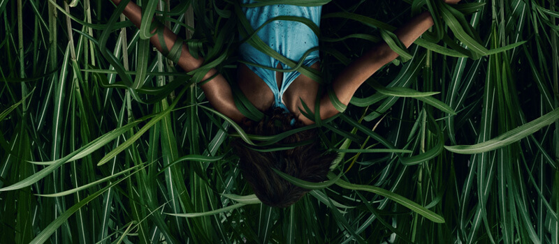 En la película de una hora y cuarenta minutos, atravesamos la hierba alta con una hermana y un hermano que intentan encontrar la fuente del llanto de un niño, pero terminamos atascados.