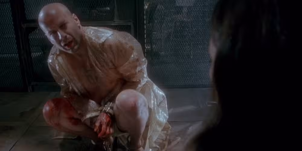 Y ahora algo completamente diferente: 12 monos Puede incluir escenas de Willis sosteniendo un arma, pero está lejos de ser una película de acción tradicional.. En cambio, el thriller surrealista de Terry Gilliam ve al personaje de Willis viajando desde un futuro post-apocalíptico para detener el virus que acabó con la mayor parte de la humanidad.