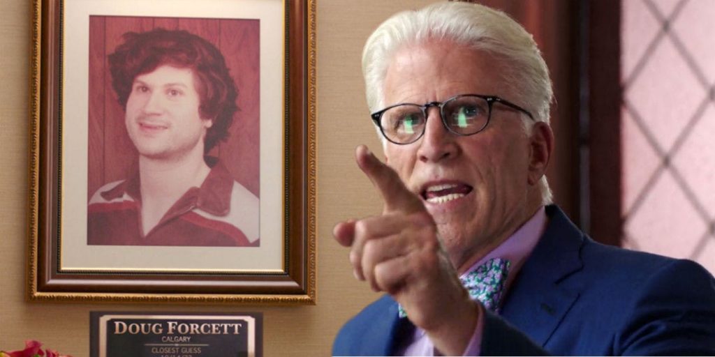 La pista que finalmente hizo que Michael se diera cuenta del hecho de que algo no estaba bien con el sistema de puntos era descubrir que Doug Forcett, el único humano que se había acercado a adivinar correctamente cómo funciona la otra vida, no estaría entrando en el buen lugar. A pesar de llevar una vida dolorosamente cuidadosa. De alguna manera, a pesar de vivir en un aislamiento casi total y temer tanto como pisar un caracol, Doug todavía obtuvo suficientes puntos negativos para condenarle al lugar malo.