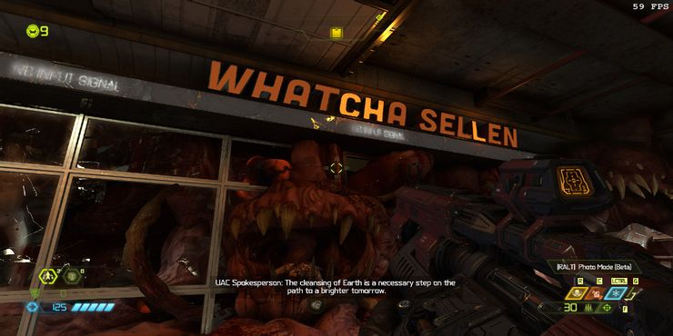 En el infierno empapado de sangre que es el mundo de DOOM Eterno, todavía hay espacio para homenajes a otros videojuegos como Resident Evil 4. En un momento dado, mientras matan demonios, los jugadores pueden encontrar una tienda llamada “Whatcha Sellen, “una de las famosas líneas de RE4comerciante estrella.