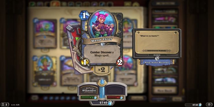 El popular juego de cartas de Blizzard, Piedra de la chimenea, tiene su propio RE4 referencia. Una de las cartas, Wand Thief, viene con una cita familiar en su texto de sabor: “¿Qué estás comprando?