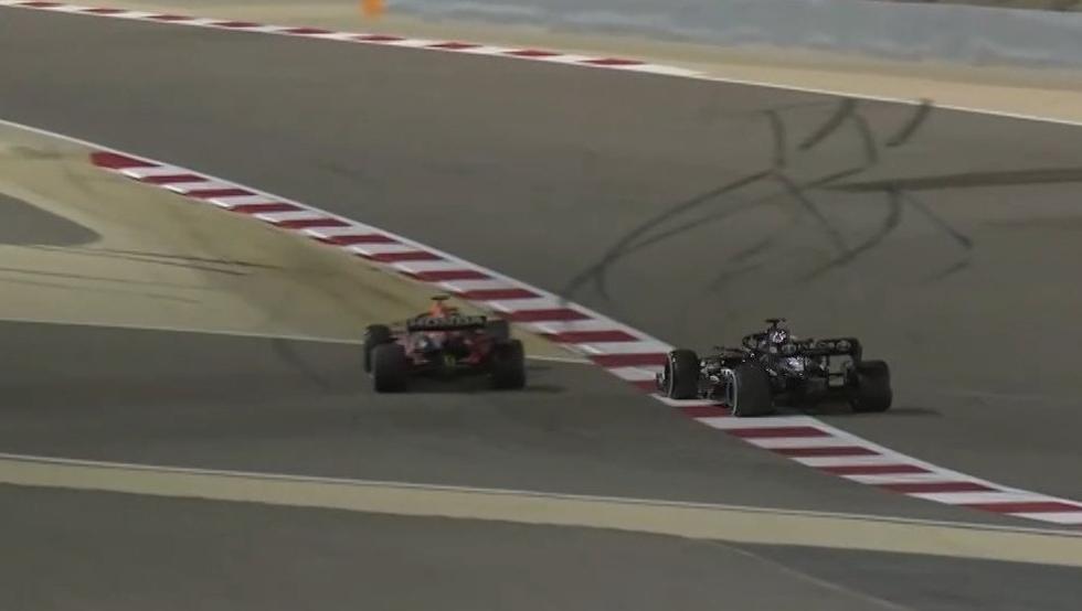3. Dirección de Carrera avisó al equipo, que a su vez, le dijo a Hamilton que no se saltara más esos límites. El inglés decía que Dirección de Carrera había dicho que estaba permitido hacerlo. Dirección de Carrera le iba a mostrar una bandera blanca y negra si volvía a hacerlo y le sancionarían con una penalización de 5 segundos. Hamilton no entendía el motivo porque entendía que antes de la carrera nadie le había prohibido hacer ese movimiento.