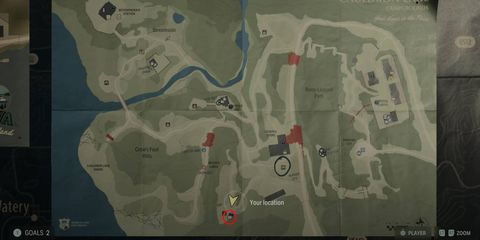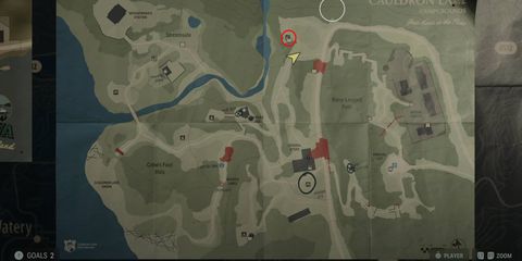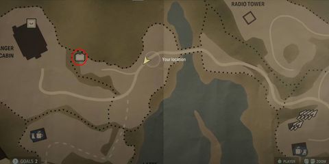 Debes tener Cortadores de pernos para llegar a esta lonchera, que se encuentra dentro del Alquiler de Cabañas al este del lago Cauldron. Pase por la primera cabaña, luego dé la vuelta afuera para entra en la cabina a tu izquierda. La caja se encuentra en una mesa a su izquierda cuando entra por la puerta trasera. |