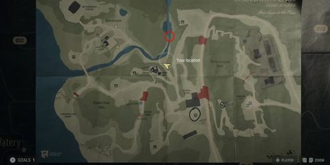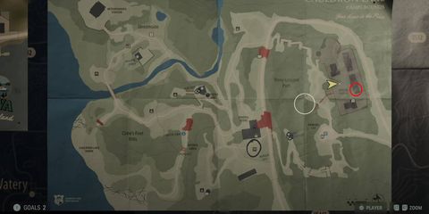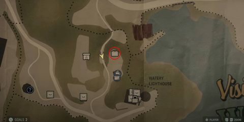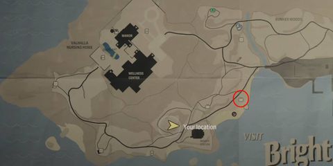 Acércate al Señorío en Bright Falls desde el noreste para entrar por el costado. Inmediatamente gire a la derecha para encontrar una lonchera en un estante en la habitación donde se puede ver un mapa de la mansión. |