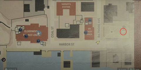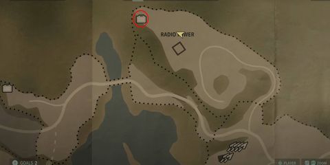 Ve hacia el Estación FBC a la derecha del lugar del asesinato debajo de la tienda general. Puedes encontrar la lonchera en una repisa al lado de esta torre de radio. |