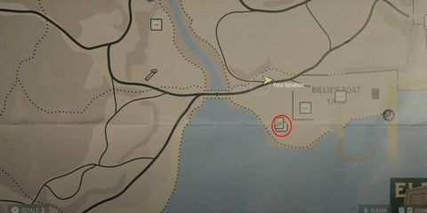 Dentro Astillero de Billie, puedes acercarte al sendero desde Lunchbox #14 y luego dirigirte hacia el sur cuando ingreses al área. La lonchera aquí estará cerca de uno o dos barcos atracados junto a dos árboles pintados. |