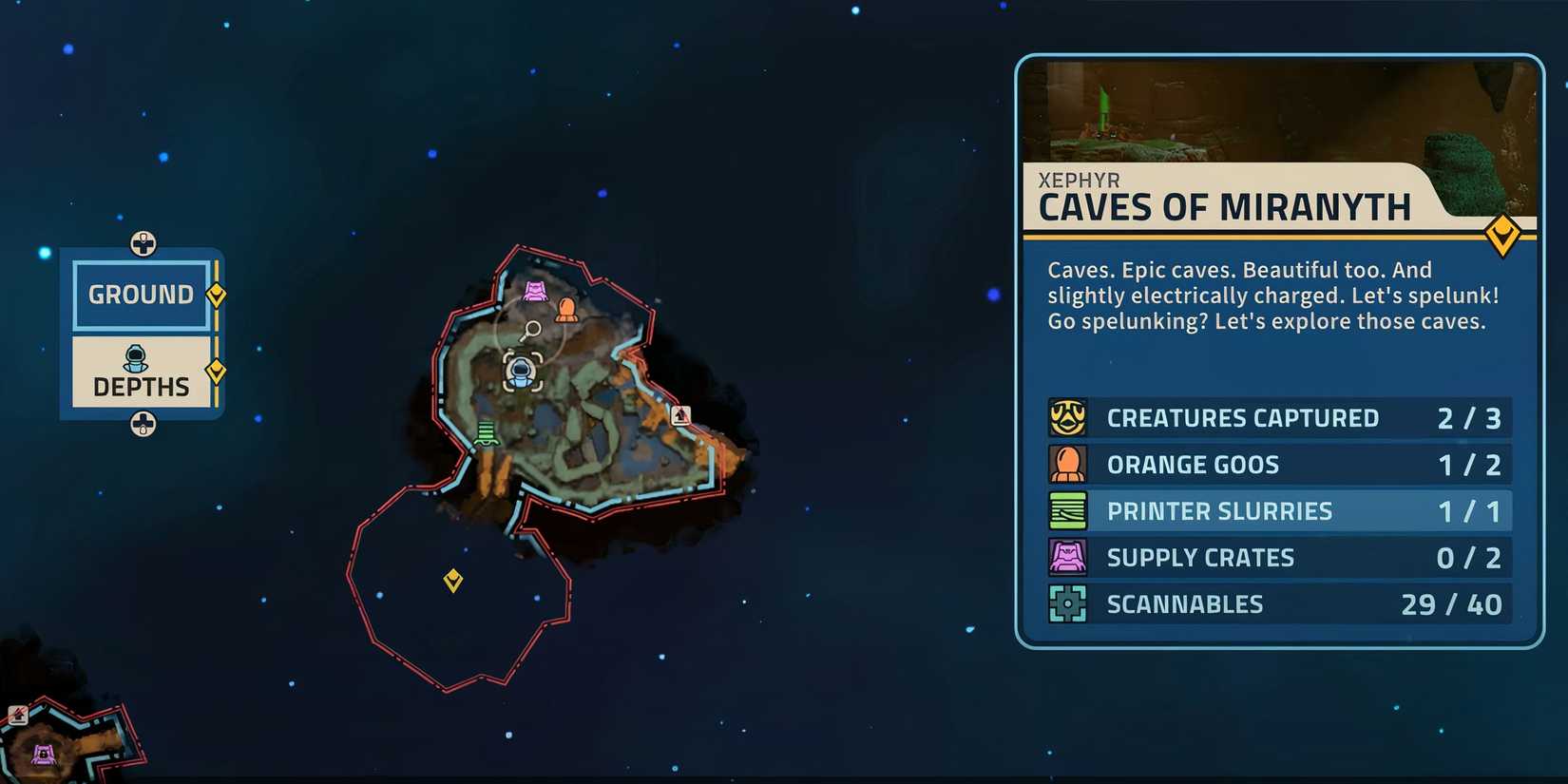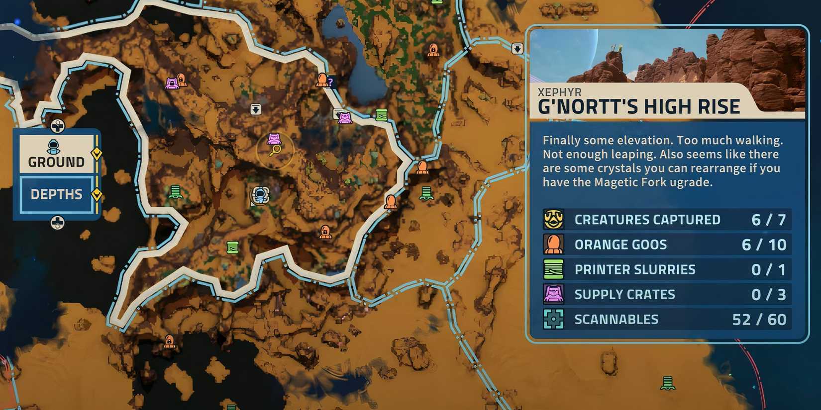 Para llegar al criopod NE1, necesitará descender a las profundidades del área de gran altura del G’nortt a un área subterránea llamada Stone Aerie y disparar a través de la red araña para caer y escanear el criopod. Para el criopod de 10-dy, Tendrás que alimentar a las fauces para abrir las raíces y obtenga acceso al área donde pueda escanearlo. También hay dos bolas naranjas de Goo en esta área, así que asegúrese de engullirlas mientras estás allí.