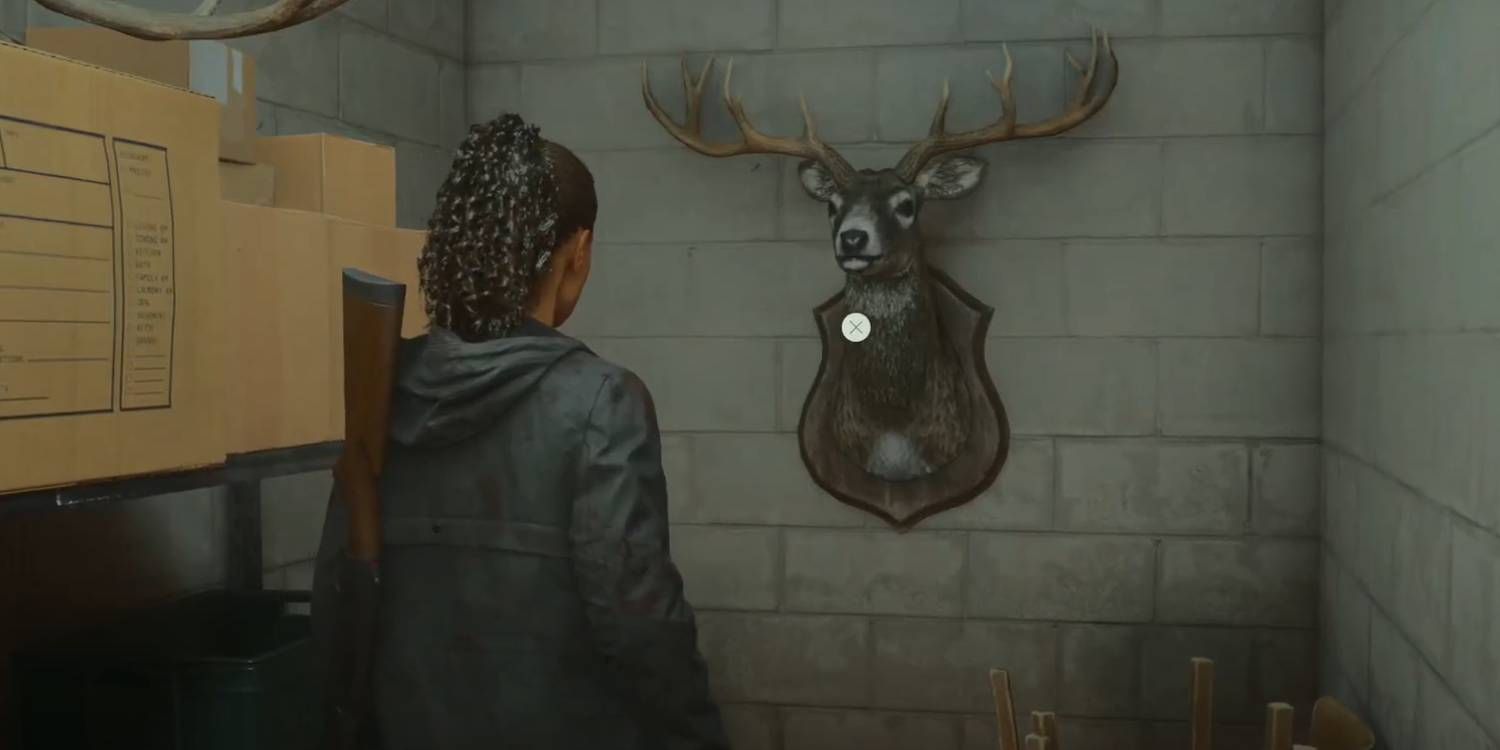 Regreso al albergue e interactúa con Deer Head en la habitación de Saga para revelar un Ciervo real que ha aparecido en el edificio.. El animal te observa antes de caminar tranquilamente por los pasillos del Lodge, casi haciéndote señas para que sigue a la criatura. El ciervo desaparecerá de su vista a medida que recorre la fila de habitaciones, dejando una puerta abierta Al final del pasillo a tu derecha en Alan Wake 2.