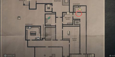 Dentro de la habitación sin pomo de puerta en el Centro de bienestar Valhallaen un Taller área a la que solo puedes llegar durante Alan Wake 2El quinto capítulo de la historia, “Regreso 5: Dioses antiguos.“ |