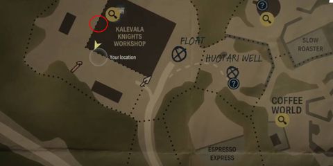 Viaja a través de las puertas cerradas al lado del Taller de los Caballeros de Kalevala utilizando el Cortadores de pernos para encontrar Deer Head justo dentro del área de la tienda principal. |