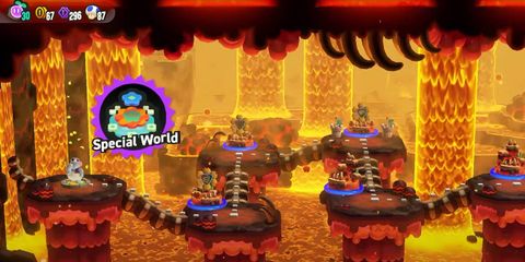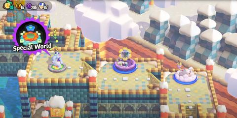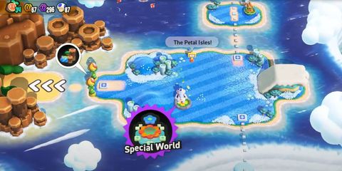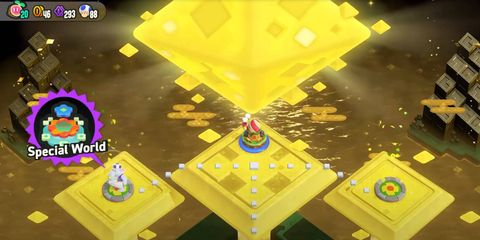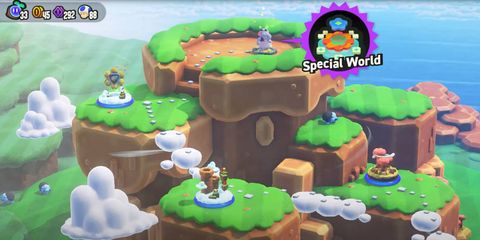 Hay siete entradas al mundo especial, cada uno en uno de los mundos normales por los que normalmente viajas mientras juegas. A diferencia de las ubicaciones del Capitán Toad en Super Mario Bros. Maravilla, estas entradas actúan como niveles, a los que debes llegar completando etapas a lo largo de un camino. Es posible que necesites encontrar el salidas secretas de ciertos niveles en un mundo para desbloquear los cruces del mundo especial después de superar la aventura principal.