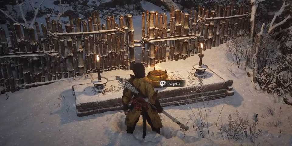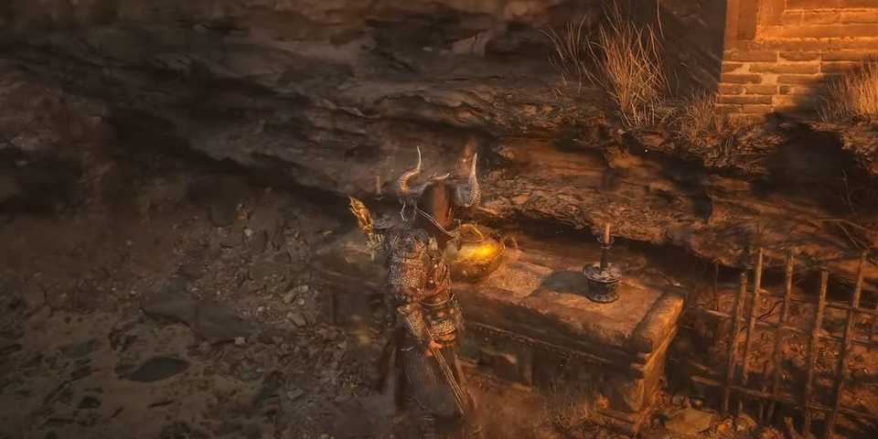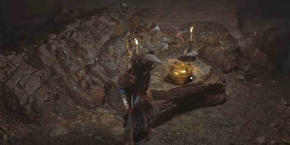 Desde el Santuario de esta área en el Bosque de Bambú de Black Wind Mountain, pase la puerta y baje más allá del andamio. La Píldora está más allá de la cueva donde luchaste contra el Noble Vestido de Blanco en Mito negro: Wukongen una mesa junto a la repisa desde donde se puede ver toda la región. |