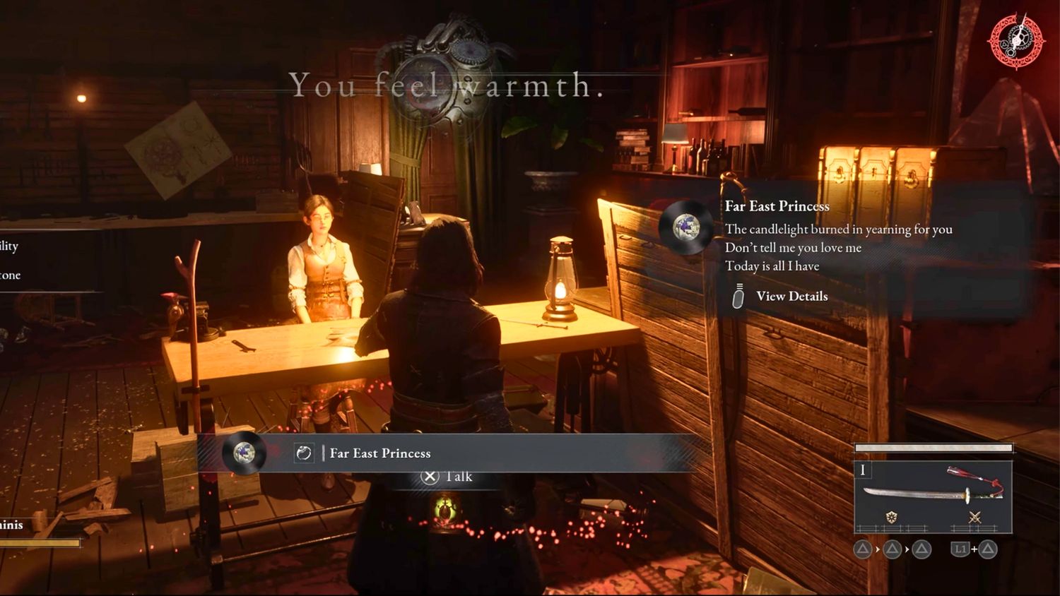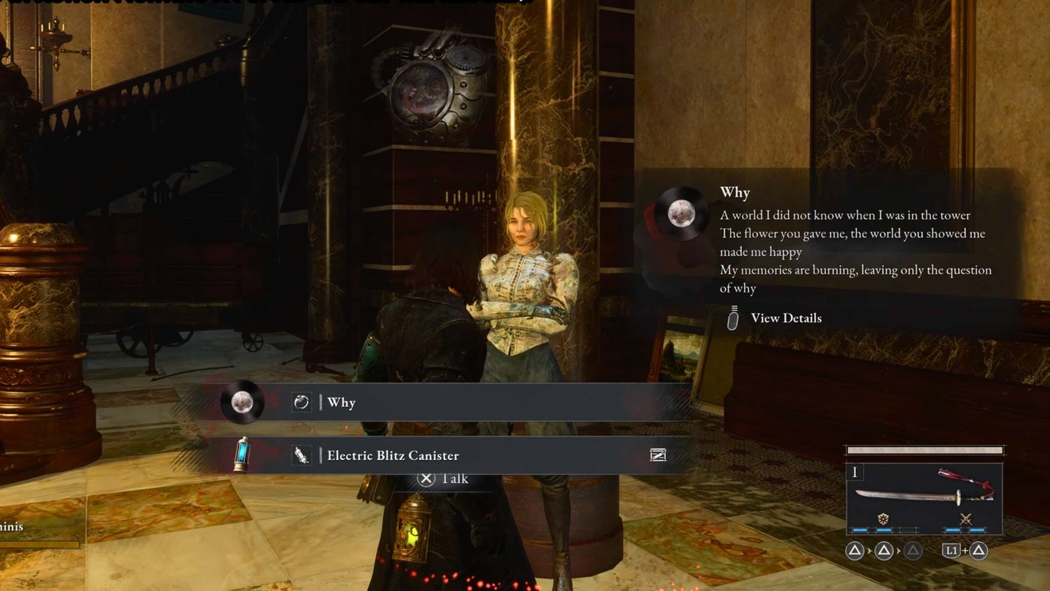 Una vez que el jefe sea derrotado, regresa al Hotel Krat y habla con Antonia. Ella te informará de un pasaje secreto detrás de su retrato. Ahora habla con Belle, quien te pedirá que encuentres a su amiga. Para hacerlo, dirígete a la estación central de Krat, donde podrás encontrarlo. El amigo, Atkinson, está específicamente solo dentro de un vagón de tren. Le entregará una carta que debería llevarse a Belle. Ella te recompensará con el registro del porqué cuando hables con ella.