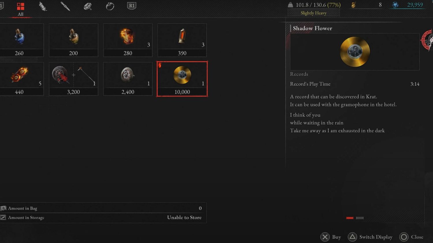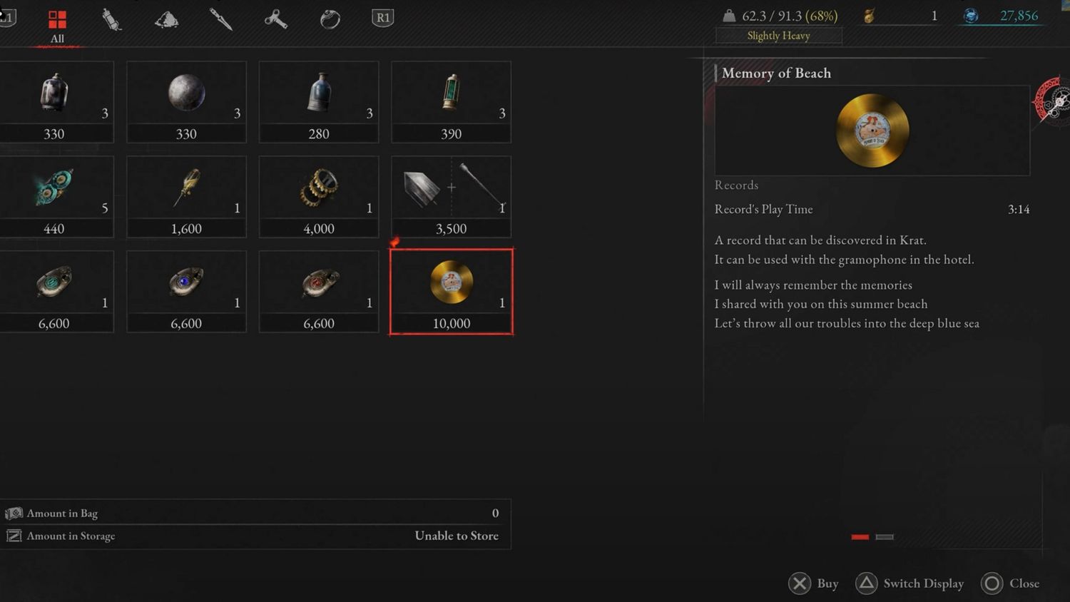 “/> Este Registro es fácil de obtener pero requerirá una cantidad considerable de Ergo. Busca el Comerciante errante en el apartamento abandonadoy venderá este disco por 10.000 por lo tanto.