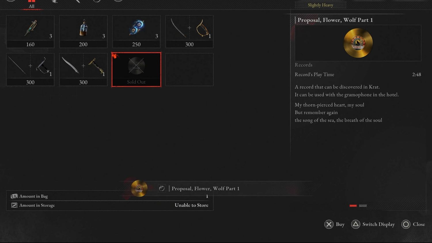 “/> Este disco también se puede adquirir en el Comerciante errante pero en el Callejón Cerasani. Por suerte, éste sólo costará 6.000, por tanto.