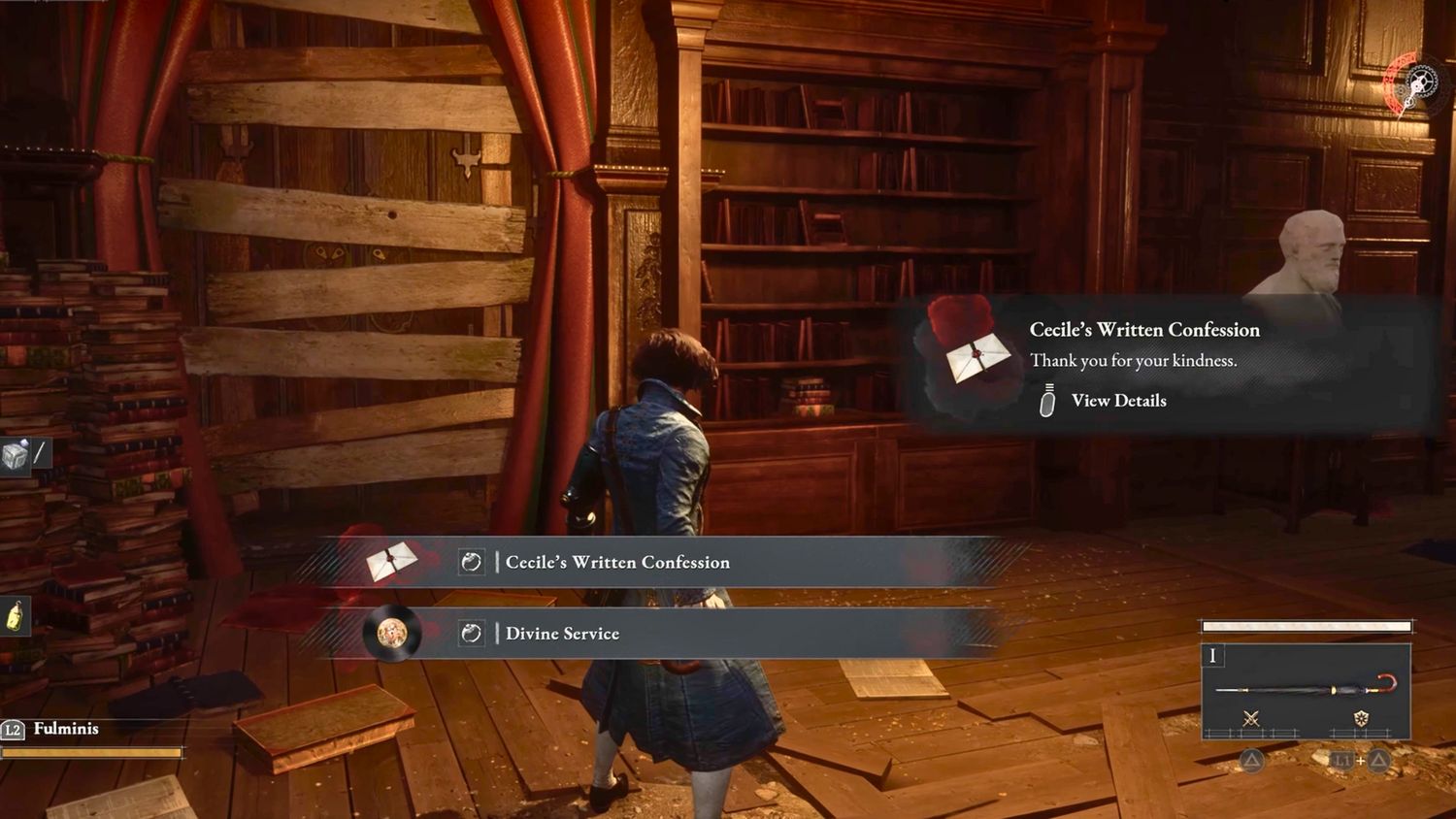 “/> Habla con Cecile en la Biblioteca de la Catedral de St. Frangelico y completa la misión que ella te asigna. La misión consistirá en conseguir la Santa Marca de la Oficina del Arzobispo. Después de vencer al jefe del arzobispo caído Andreus, regresa con Cecile y habla con ella para completar la misión. Después de entregarle la Santa Marca, le entregará la “Confesión escrita de Cecile”, que, después de leerla, desbloqueará el Registro del Servicio Divino.