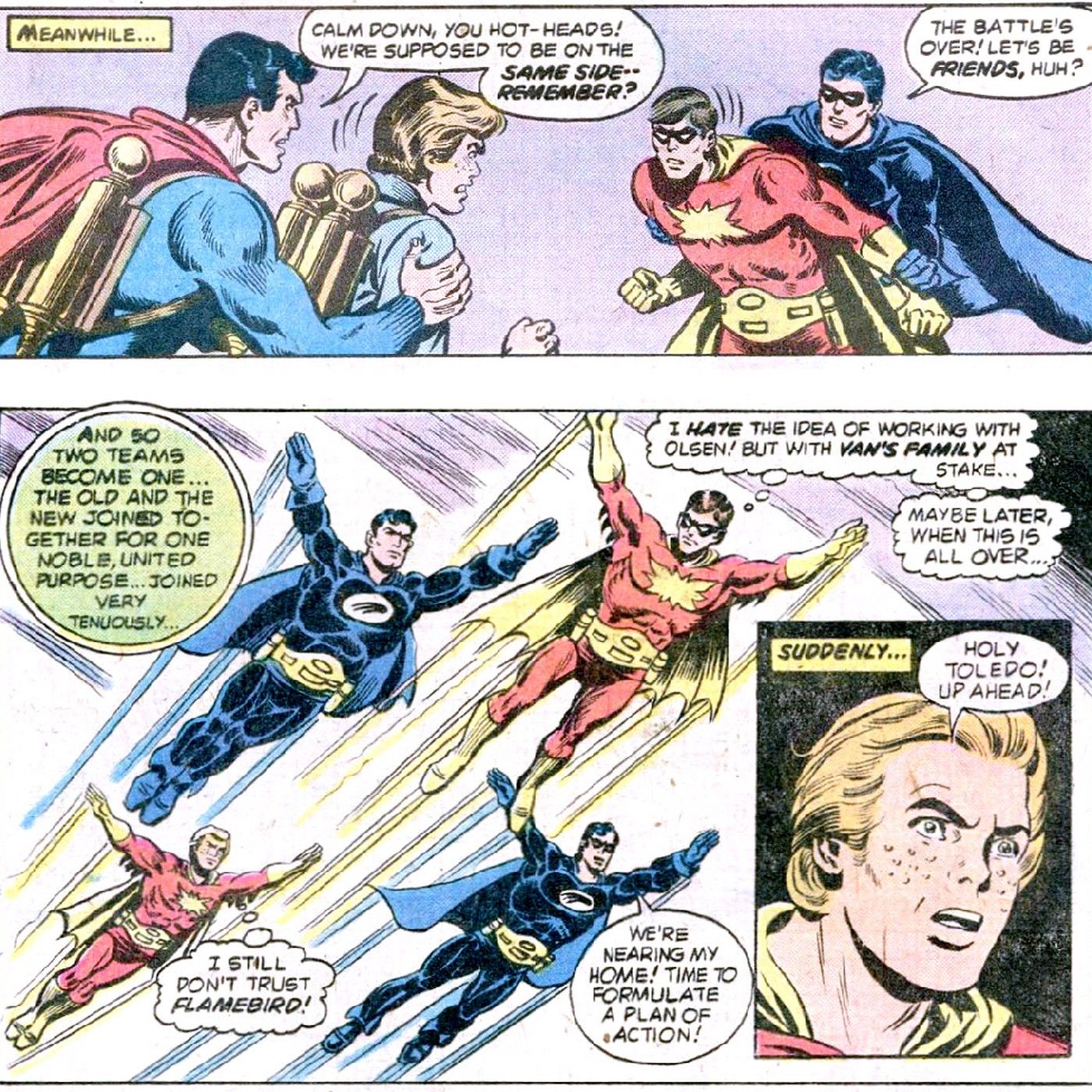 Cuando Ultraman se apodera de la ciudad botella de Kandor, haciéndose pasar por Superman para defender su propia dictadura, un nuevo Dúo Dinámico entra en escena para salvar el día. La improbable pareja llega en la forma de Kara Zor-L y Kara Zor-El. Por lo general, las dos son más conocidas como Power Girl y Supergirl, respectivamente, pero para salvar a Kandor, adoptan las identidades de Flamebird y Nightwing. No son la primera pareja en adoptar esos nombres (más sobre esto más adelante), pero juntos representan una amenaza formidable. Esto es especialmente cierto para el renombrado Power Girl, quien, como Nightwing, luce una armadura que, con fines de defensa, la convierte en una oponente aún más dura..