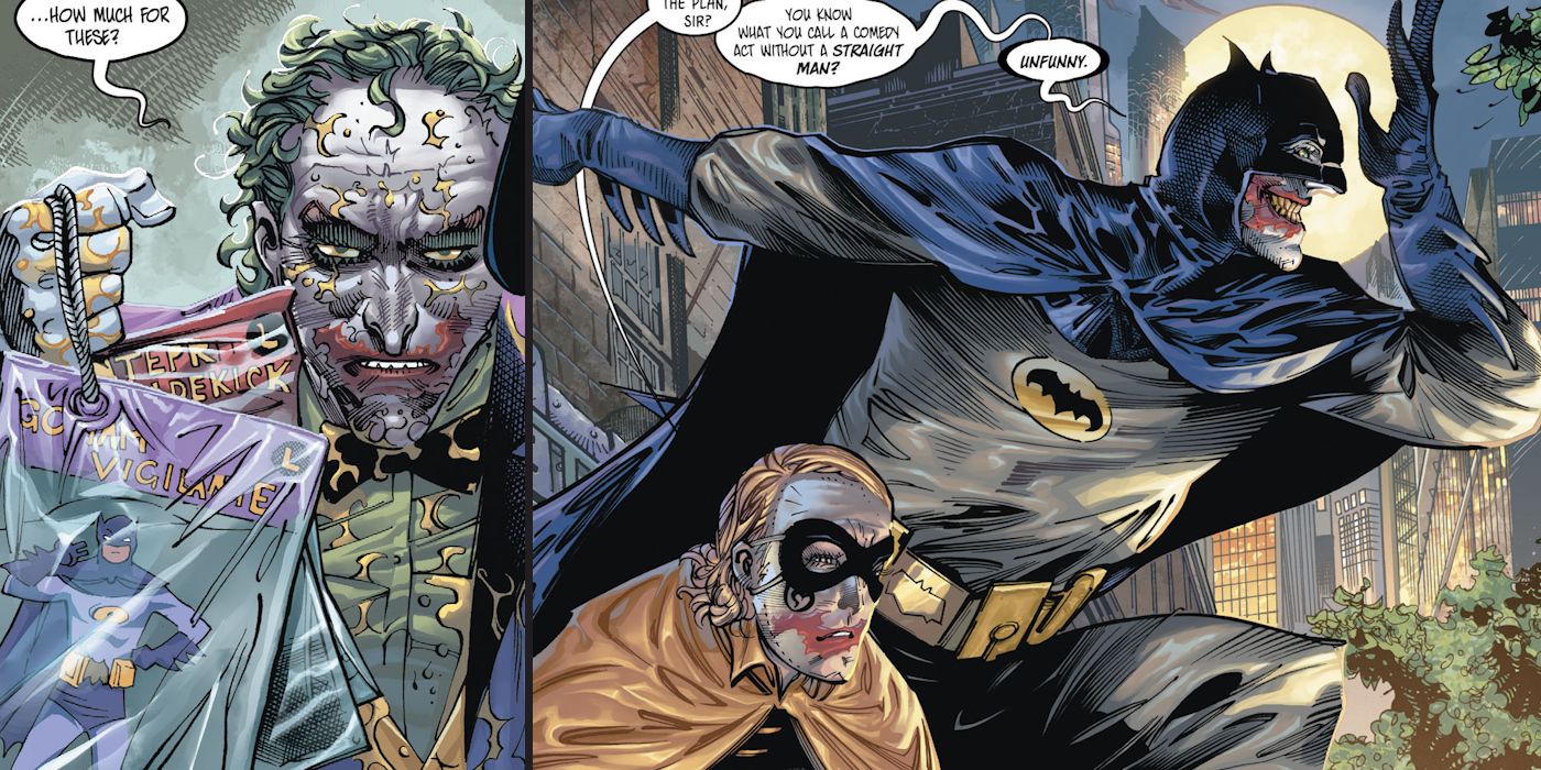 “/> Durante los acontecimientos de El Joker: El hombre que dejó de reír la aparición de dos Jokers simultáneamente provocó una guerra total entre los respectivos Príncipes Payasos del Crimen. Inicialmente, el conflicto fue desigual, ya que un Joker mantenía el control total de sus matones y el respeto por las pandillas de Gotham, mientras que el otro Joker prácticamente no tenía recursos ni aliados. Esto llevó al segundo Joker a tener que depender mucho más del engaño y el caos para ganar, lo que, a su vez, resultó en que una mayor parte de la población civil de la ciudad quedara atrapada en medio de la guerra territorial.
