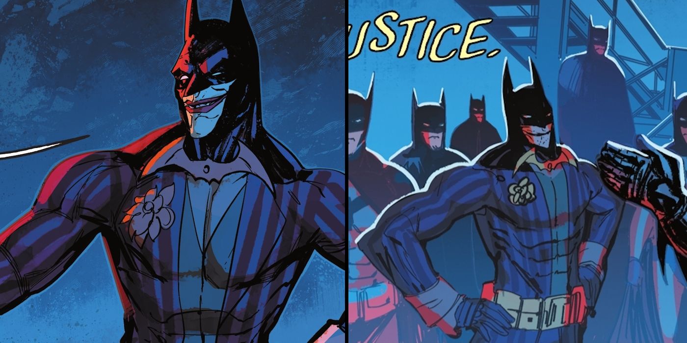 “/> Recientemente, a los lectores se les presentó la idea de Dimension Batman, que conecta el subconsciente de todos los Batmen en todo el Multiverso, brindándoles un espacio para entrenar e intercambiar ideas sobre la lucha contra el crimen. Naturalmente, esto permitió la representación de una gran variedad de Batman; Lo más destacado fue el heroico Joker conocido como el Murciélago Sonriente. Esta versión de Batman parece ser el Joker, quien decidió ponerse la capucha en algún momento de su vida. Teniendo en cuenta que todos los demás Batmen son amigables con él, es probable que nunca haya sido un villano. Si bien los lectores no pueden ver al Murciélago Sonriente en combate, es muy posible que posea una combinación de los gadgets del Joker y Batmanlo que lo haría notablemente peligroso.