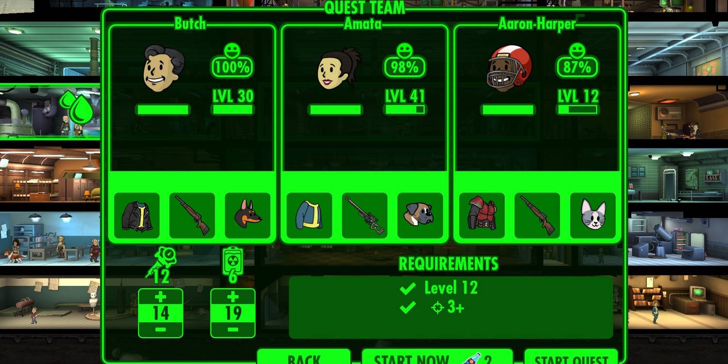Para que la bóveda siga funcionando con éxito, los tres recursos principales deben mantenerse altos, junto con la felicidad de los habitantes. Cada día. La bóveda se calificará según la felicidad de sus habitantes, y se otorgarán bonificaciones de producción cuanto más felices sean. Además de las misiones de gestión de recursos y Supervisor, Hay objetivos más pequeños que se pueden completar para ganar los límites necesarios para comprar nuevas habitaciones.así como loncheras Vault-Tec que contienen artículos útiles.
