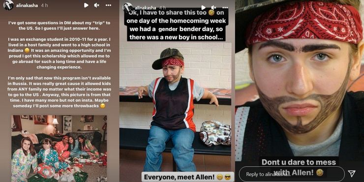 Según la historia de Instagram de Nochebuena de Alina, la última vez que estuvo en Estados Unidos fue “maravilloso.Mencionó que era estudiante de intercambio y que había comprado un iPod para Navidad en ese entonces. En una nueva serie de Historias de Instagram, Alina escribió que estaba recibiendo preguntas en sus DM sobre ella “‘viaje’ A los E.U” Alina reveló que ella era “un estudiante de intercambio en 2010-11 por un año. ” Alina vivía en Indiana con una familia anfitriona y asistía a la escuela, que ahora recuerda como una “oportunidad asombrosa.” Está orgullosa de haber obtenido la beca que le permitió irse al extranjero por tanto tiempo y “tener una experiencia que te cambie la vida. “