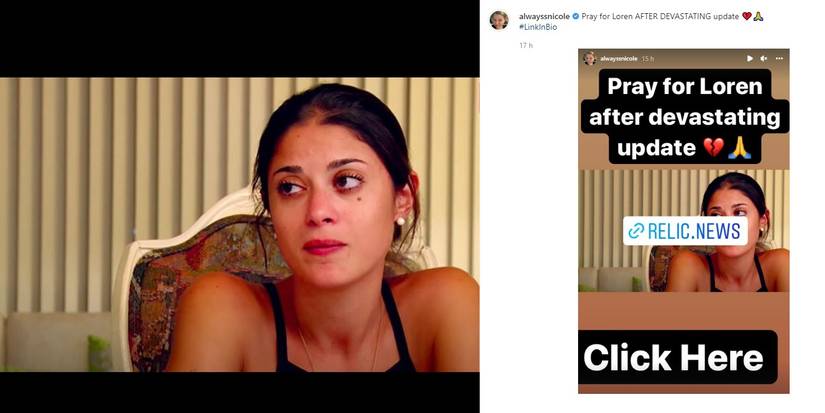 Nicole compartió una publicación horrible similar sobre Prometido de 90 días coprotagonista Loren en diciembre de 2021. Nicole publicó una foto de Loren luciendo cansada y la subtituló: “Oremos por Loren DESPUÉS de la DEVASTADORA actualización #LinkInBio” mientras desactivaba sus comentarios. Ella lo compartió nuevamente en sus Historias pidiendo a sus fans que “haga clic aquí.“El artículo trataba sobre Loren hablando con sus seguidores en Instagram y agradeciéndoles por haberse comunicado con ella después de que se publicó. reveló que a su esposo Alexei le diagnosticaron COVID-19.