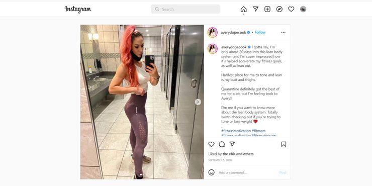 En una publicación de septiembre de 2020, la ex Prometido de 90 días star compartió su progreso de pérdida de peso. Avery explicó que solo 20 días después de comenzar el sistema de cuerpo magro que comenzó a seguir, estaba comenzando a alcanzar sus objetivos de acondicionamiento físico. En esta foto de actualización, Avery también mostró su ahora icónico cabello largo y rosado, que era muy favorecedor para su tono de piel. Los fanáticos comentaron, haciéndole saber lo orgullosos que estaban de que estuviera siguiendo un régimen de ejercicio. Querían más detalles sobre los hábitos que adoptó. Avery les dijo a sus fanáticos que le enviaran un mensaje directamente si querían aprender más sobre su sistema de cuerpo delgado.