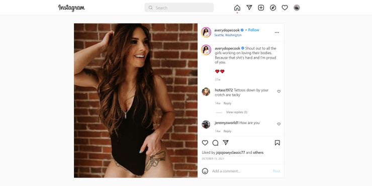 Las mujeres a menudo son presionadas a perder peso para ajustarse a los estándares de belleza de la sociedad, y no porque quieran ser la mejor versión de sí mismas. En la publicación de Instagram de Avery, los fanáticos notaron los tatuajes de pistola que Avery tiene en sus caderas. Algunos aceptaron su nueva apariencia, mientras que otros se desanimaron por los tatuajes debido a su ubicación. A pesar de la recepción mixta, Avery encontró humor en los comentarios negativos sobre sus elecciones.