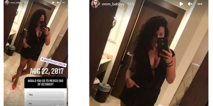 Con seis días para su boda, las cosas entre Emily, Kobe y su familia estuvieron tensas durante el episodio 14. Pero las últimas actualizaciones de Instagram de Emily sugieren que está feliz en este momento. Si bien Emily hace todo lo posible por no compartir ninguna foto con Kobe para indicar que todavía están juntos, quiere que los fanáticos la entiendan mejor y lo hace revelando cositas nunca antes vistas de su vida. Prometido de 90 días. En su nueva historia de Instagram, Emily publicó una selfie de sí misma en el espejo de agosto de 2017. En ese entonces, Emily estaba disfrutando de sus vacaciones en un resort llamado Moon Palace en Cancún.
