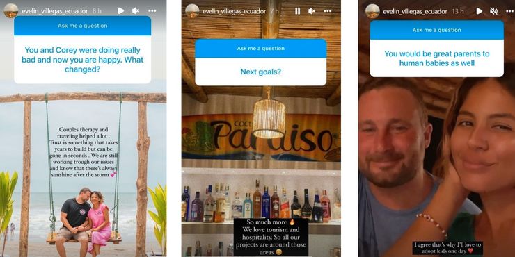 Evelin parece más feliz que nunca en sus redes sociales desde entonces. Decidió compartir algunas actualizaciones de su vida con sus seguidores organizando un AMA. En primer lugar, Evelin reveló que ella y Corey protagonizarán una nueva prometido de 90 días spin-off pronto. “Sí, no nos vamos”, se rió Evelin. Un seguidor preguntó: “Corey y tú estabais muy mal y ahora sois felices. Qué cambió?” Evelin explicó que se lo deben todo a la terapia de pareja y a los viajes como “ayudó mucho” Según Evelin, “la confianza es algo que lleva años construir pero puede desaparecer en segundos.“Ella admitió que todavía están”procesandosus problemas. Corey y Evelin ahora saben “que siempre hay sol despues de la tormenta.”