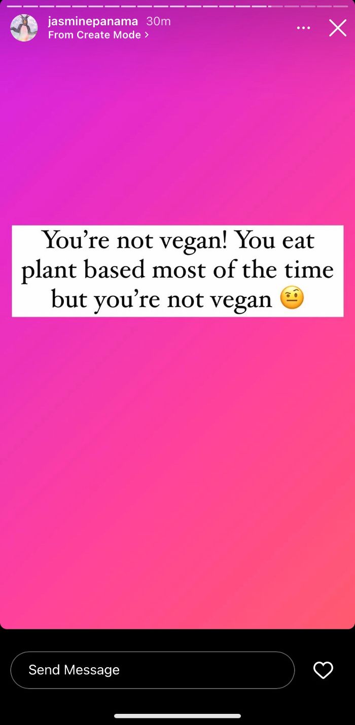 La exprofesora de literatura estadounidense Jasmine ahora ha destrozado a la estrella de telerrealidad Kim por fingir ser vegana en Internet. En una de sus últimas historias de Instagram, compartió un video de Kim en el que se autodenominaba vegana. Dijo que es vegana”98%” del tiempo mientras llenaba su plato con carne. Si bien Kim puede estar bromeando en el video, Jasmine no sintió que fuera divertido. Criticó al fundador de SKIMS diciendo que si consume alimentos de origen vegetal la mayor parte del tiempo, no la convierte en vegana. En otra historia de Instagram, Jasmine escribió: “No existe tal cosa como vegano al 90%, 96% o lo que sea. Eres vegano o no.“