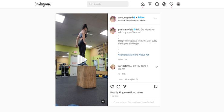 La modelo de acondicionamiento físico convertida en luchadora compartió un carrete de Instagram que muestra su rutina de ejercicios intensos. En el clip, Paola hizo de todo, desde flexiones hasta burpees y saltos de altura. Ella escribió, “¡Feliz Día Internacional de la Mujer! ¡Cada día es tu día Mujer!” Su entrenamiento parecía realmente inspirador y muchos fanáticos elogiaron su resistencia y fuerza. Un fan preguntó: “¿Cuál es el secreto de tu fuerza Pao?” Ella respondió, “Mis pequeñas metas. Mi tristeza o enojo”.