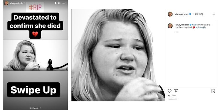 Prometido de 90 días Los fanáticos se volvieron escépticos de creer en Nicole por varias razones, pero en estos días se debe a sus publicaciones de clickbait de Instagram. En la última de las controversias de Nicole, una publicación que dice: “#RIP Devastated para confirmar su muerte,”Fue compartida en su página de Instagram. La foto adjunta era la de una Nicole llorando en blanco y negro. Luego, la misma foto se compartió en las historias de Instagram de Nicole, donde la leyenda siguió siendo la misma. Los fanáticos notaron que los comentarios estaban deshabilitados en la foto del feed de Nicole, por lo que corrieron a sus publicaciones más antiguas para preguntarle si estaba bien.