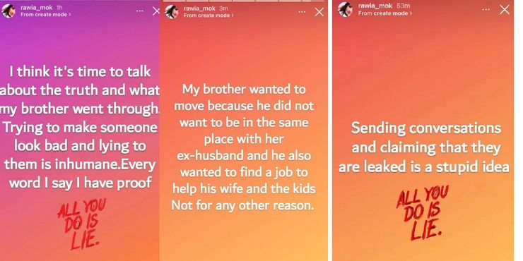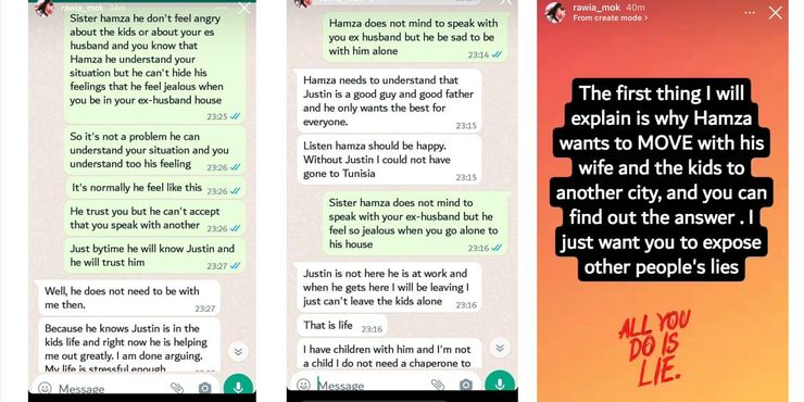 Pero Rawia tenía algo de su propio té para derramar en forma de mensajes de texto que ella y Memphis se habían enviado. “Mi hermano quería mudarse porque no quería estar en el mismo lugar con su exmarido”, escribió Rawia en sus historias de Instagram. Ella dijo que Hamza quería encontrar un trabajo para ayudar a su esposa Memphis y a los niños, “no por ninguna otra razón.” Rawia publicó los recibos para probar sus afirmaciones en forma de mensajes de Whatsapp que la mostraban a ella y a Memphis hablando sobre el ex esposo de Memphis, Justin Sandoval.