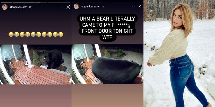 Stephanie recientemente recurrió a sus historias de Instagram para compartir imágenes de video de la cámara en su porche que mostraban a un oso hurgando en su puerta momentos después de que ella ingresara a su casa con su perro. Sin darse cuenta de que la criatura había estado al acecho tan cerca, la hizo temblar. “LITERALMENTE 5 MINUTOS ANTES EL OSO WTF ESTOY SACUDIENDO DEBE HABER ESTADO MIRANDO COMO D*** QUIÉN ES TAN BUENO** CARIÑO SE VE COMO UNA VERSIÓN MINI DE MÍ“, subtituló la publicación de ella y su perro entrando por la puerta principal.