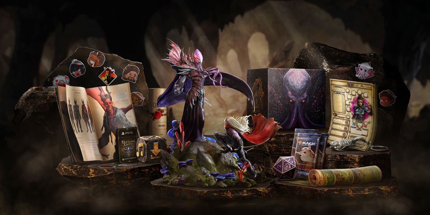 “/> La Edición Deluxe difiere de la Edición Coleccionista de Puerta de Baldur 3 de muchas maneras. Antes de agotarse, la Edición de Coleccionista era una versión más premium del producto y, si bien no ofrece una copia física del juego, incluye un libro de arte exclusivo de tapa dura de 160 páginas, un llavero de renacuajo de metal, un paquete de refuerzo para Magia: La reunión, un d20 de metal grabado a medida (y una versión de los dados para el juego) y un certificado de autenticidad. Sin embargo, la pieza más sorprendente de la Edición de Coleccionista es la estatuilla de 25 cm que representa a un Drow luchando contra un Mind Flayer. Los bonos digitales y el contenido DLC del juego se comparten entre los productos.