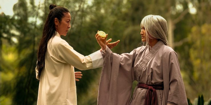 El atrevido uso del concepto de multiverso en Todo en todas partes a la vez podría decirse que pone MaravillaEl multiverso es una vergüenza. El caleidoscopio de una película imagina a Michelle Yeoh como una esposa cansada y una madre ocupada tratando de salvar su fallido negocio de lavandería y su matrimonio cuando, de repente, se entera de que ella es la única persona que puede salvar el multiverso. Todo en todas partes a la vez fue dirigida por Daniel Kwan y Daniel Scheinhart, conocidos colectivamente como Daniels, quienes anteriormente dirigieron el vehículo de Daniel Radcliffe Hombre del ejército suizo. También es una película de regreso para Ke Huy Quan, quien actuó como Short Round junto a Harrison Ford en Indiana Jones y el templo maldito. Quan interpreta a Waymond Wang, el esposo del personaje de Yeoh, Evelyn. Todo en todas partes a la vez es un tour-de-force para Michelle Yeoh.