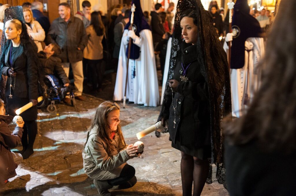 No se ven todos los tipos para estas fiestas. En concreto, se habla de una mantilla de encaje negro de blonda para las señoras de más edad o de chantilly para las más jóvenes. Y es mejor no llevar otros colores ni tampoco adornos. Debe ser más bien sobrio porque estamos hablando del tiempo de la muerte y pasión de Cristo.