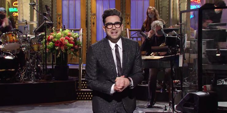 En febrero de 2021, Levy presentó un episodio de la temporada 46 de SNL. Hilarantemente entretuvo a la audiencia con bromas sobre la pandemia mientras lo golpeaban con un fideo de piscina de seis pies. También bromeó sobre su nueva fama tras el éxito de Cala de Schitt. El padre de Levy incluso hizo un cameo, apareciendo atrapado en una caja de aislamiento después de volar para ver a su hijo presentar el programa. El episodio fue un gran éxito, y a Levy incluso se le atribuyó el inicio de la tradición de dejar una nota para el siguiente presentador, pero luego desmintió la teoría.
