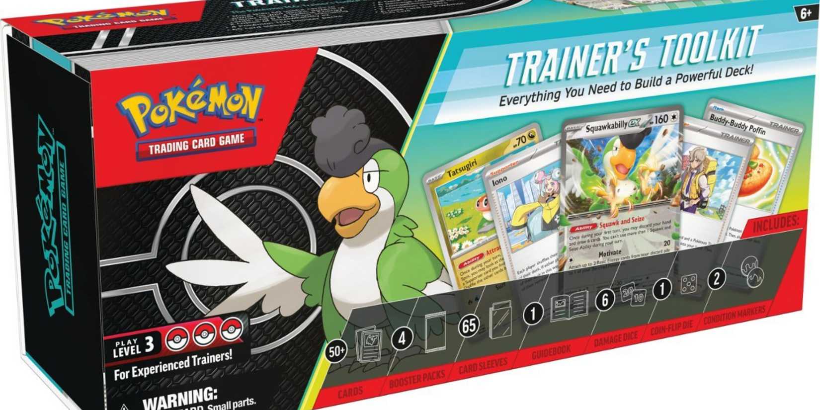 El kit de herramientas incluye tarjetas de entrenador, energía y Pokémon.
