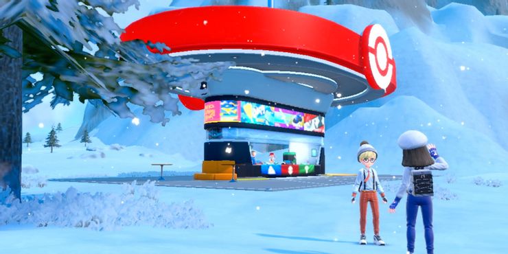 Uno de los aspectos más comentados del nuevo tráiler es Pokémon Escarlata y Violetaha cambiado de centro Pokémon. Parecen ser más un quiosco que el edificio habitual de los juegos anteriores y si los espectadores miran de cerca, pueden ver que estos quioscos también sirven como Poké Mart y posiblemente también como una tienda de ropa, dado el anuncio de zapatos que se ve en la imagen. . Estos Centros Pokémon parecen estar repartidos por todo el desierto del juego en lugar de aparecer solo en áreas pobladas.