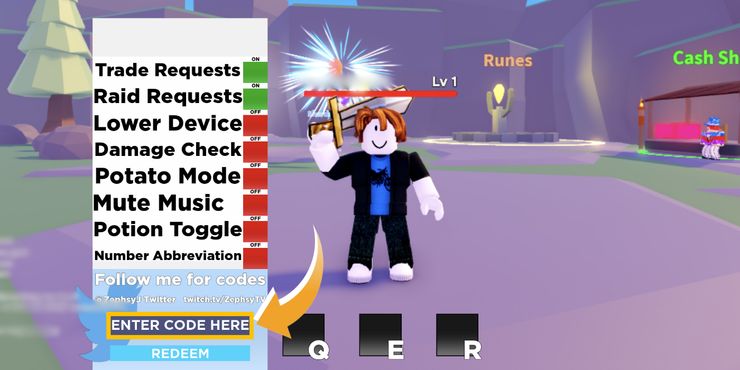 Ahora que se ha establecido la importancia del oro y las fichas, los fans deben saber cómo canjear sus códigos antes de poder recibir estas valiosas monedas del juego en Roblox. Después de ingresar al juego, presione el símbolo de engranaje en el lado derecho de la pantalla, debajo del ícono de la espada. Aparecerá una lista de opciones alternables, con un campo de texto “INGRESE EL CÓDIGO AQUÍ” en la parte inferior. Aquí, los jugadores pueden ingresar sus códigos y presionar el botón azul Canjear para adquirir recompensas.