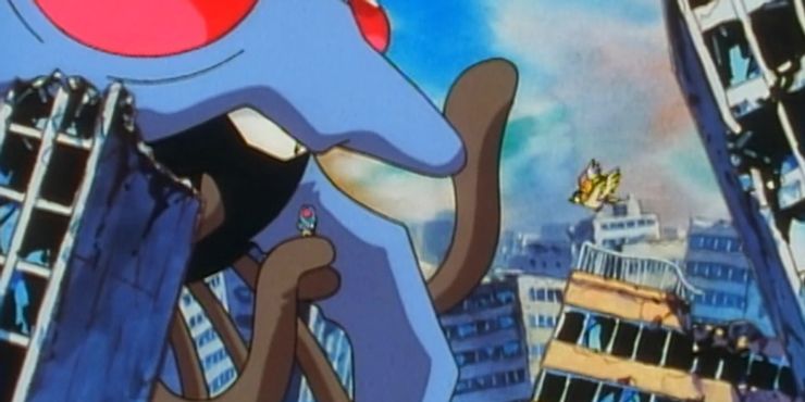 Después de los ataques del 11 de septiembre, Kids ‘WB! se negó a transmitir el episodio debido a las escenas en las que el gigante Tentacruel destruye un rascacielos con sus tentáculos. El episodio comenzaría a transmitirse después de que Cartoon Network se hiciera cargo de la serie. Más tarde se prohibiría nuevamente después del huracán Katrina en 2005.