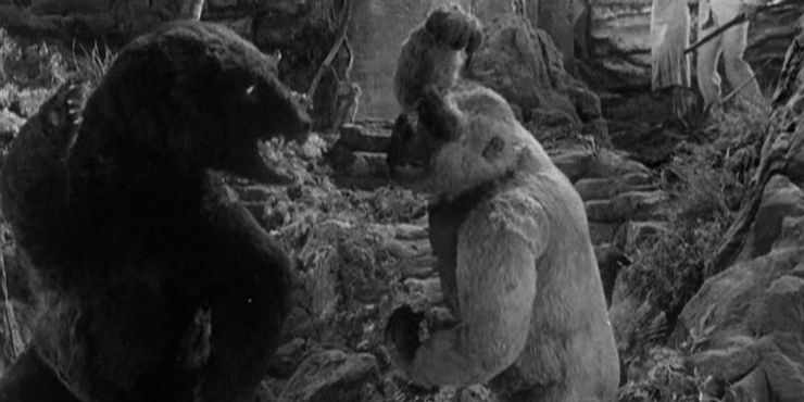 El MonsterVerse no tiene que basarse en las películas de Toho para todas sus películas. Una alternativa a elegir un Toho kaiju sería hacer su propia versión de un villano del original. Hijo de Kong. El final de la película vio al hijo de Kong enfrentarse a un oso cavernario gigante basado en una especie prehistórica real. En cuanto a cómo podría suceder una interpretación de MonsterVerse de esta pelea, la historia de la película podría llamar al hijo de Kong a tropezar con la guarida oculta de un oso de la Tierra Hueca. Si se hace bien, A bear Titan podría resultar ser una adición única y físicamente imponente al MonsterVerse, especialmente porque es algo que las películas (y las películas de Godzilla de Toho) nunca antes habían hecho. Una batalla con un oso gigante, que podría ser mucho más fuerte que Son of Kong, podría obligar al joven simio a confiar en su inteligencia y agilidad para perseverar.