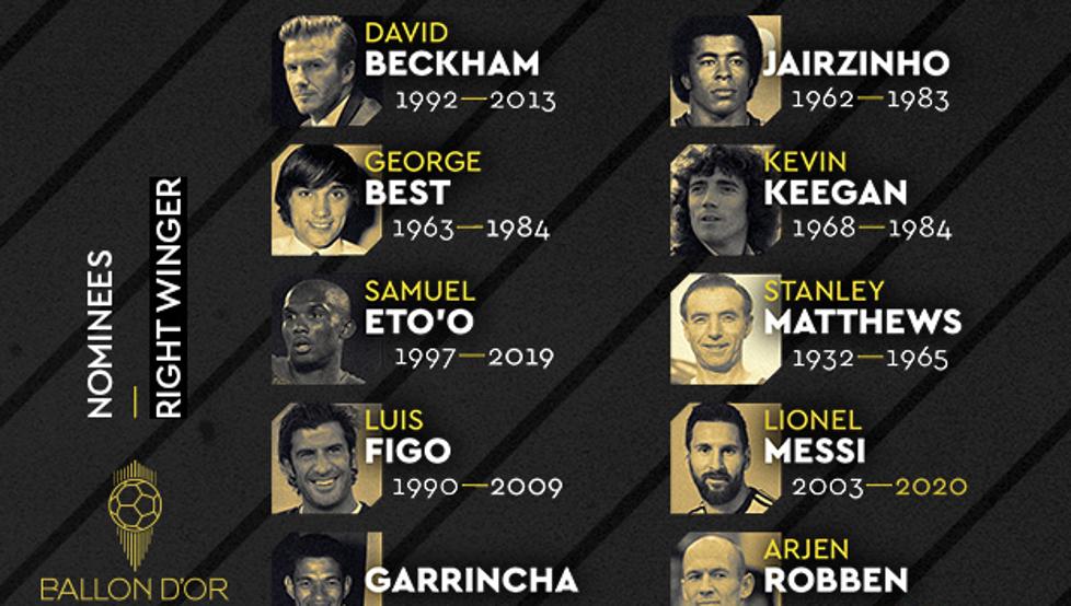 Messi, George Best, Etoo, Beckham, Figo, Jairzinho, Garrincha, Keegan, Matthews y Robben.