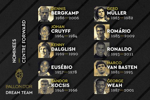 Bergkamp, Cruyff, Dalglish, Eusebio, Kocsis, Müller, Romario, Ronaldo, Van Basten y Weah.