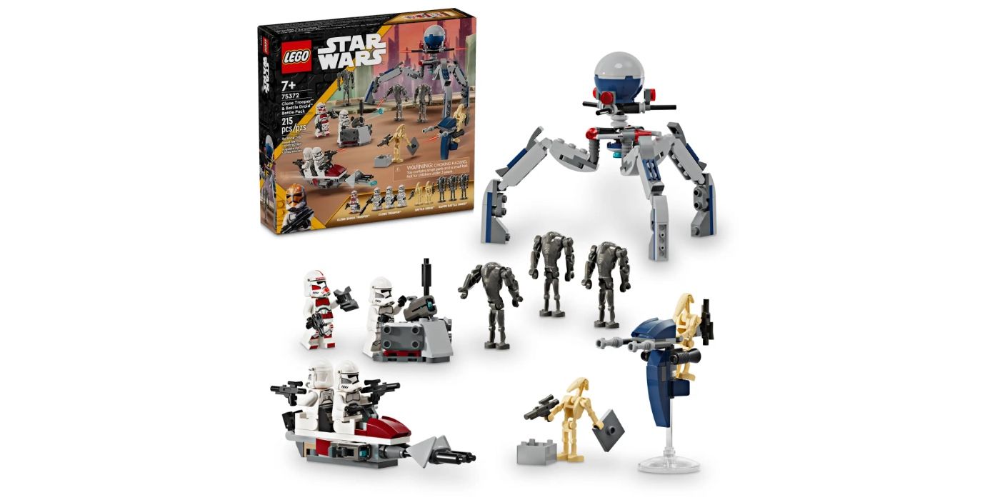 - El Clone Trooper & Battle Droid Battle Pack es una gran oferta para coleccionistas, ya que ofrece 9 minifiguras por $ 30.