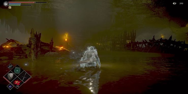 También está repleto de veneno lento, que rara vez se encuentra en Bloodborne. Si bien es molesto, de ninguna manera es el pantano venenoso más frustrante de From Software. Los antídotos no son difíciles de conseguir, y el jugador puede tener una reserva decente de ellos para cuando se encuentre con este pantano de otro mundo. El peligro más significativo aquí en realidad proviene de los enemigos de Winter Lantern que infligen frenesí en lugar del veneno.
