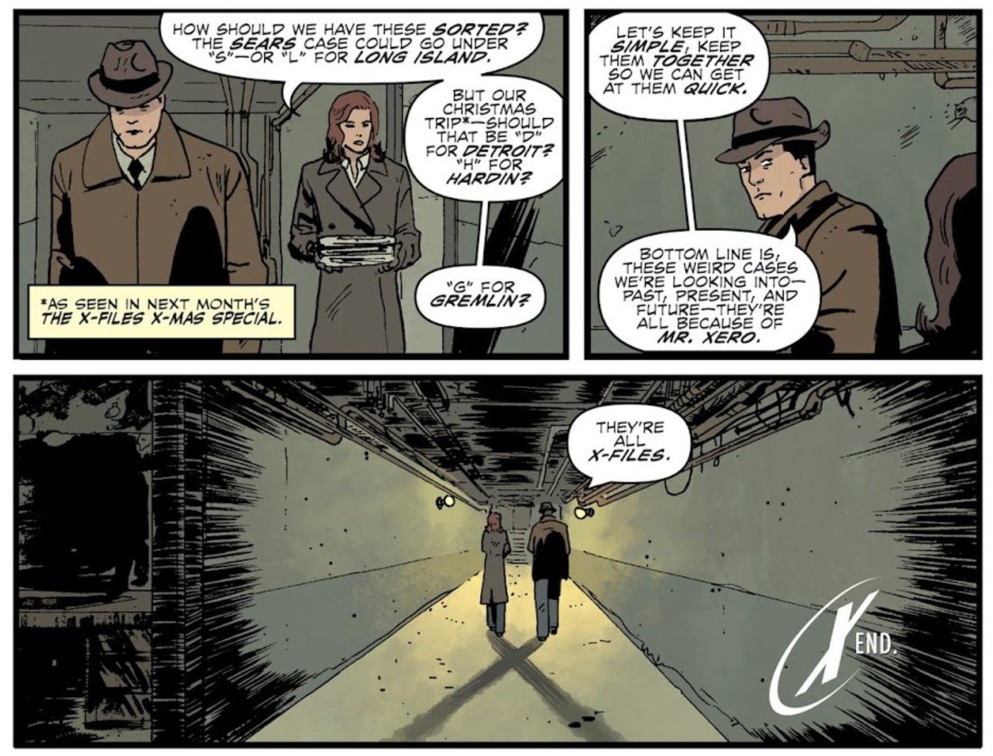 “/> El cómic revela que Xero es una figura embaucadora que trabaja para proporcionar pistas al FBI sobre sucesos extraños, trabajando con el departamento desde su primer caso hasta la actualidad (donde adoptó el nombre de Sr. Zero). Xero trata los casos de Expediente X. como un juego, y aparece repetidamente detrás de escena de los primeros casos del departamento, lo que los lleva a bautizar todos esos casos como ‘Expediente X’, llamado así por su relevancia para la investigación en curso del propio Xero. Lamentablemente, los agentes originales de Expediente X, Bing Ellinson y Millie Ohio, mantienen la participación de Xero fuera de los archivos oficiales, lo que deja que se recuerde mal el origen del nombre.